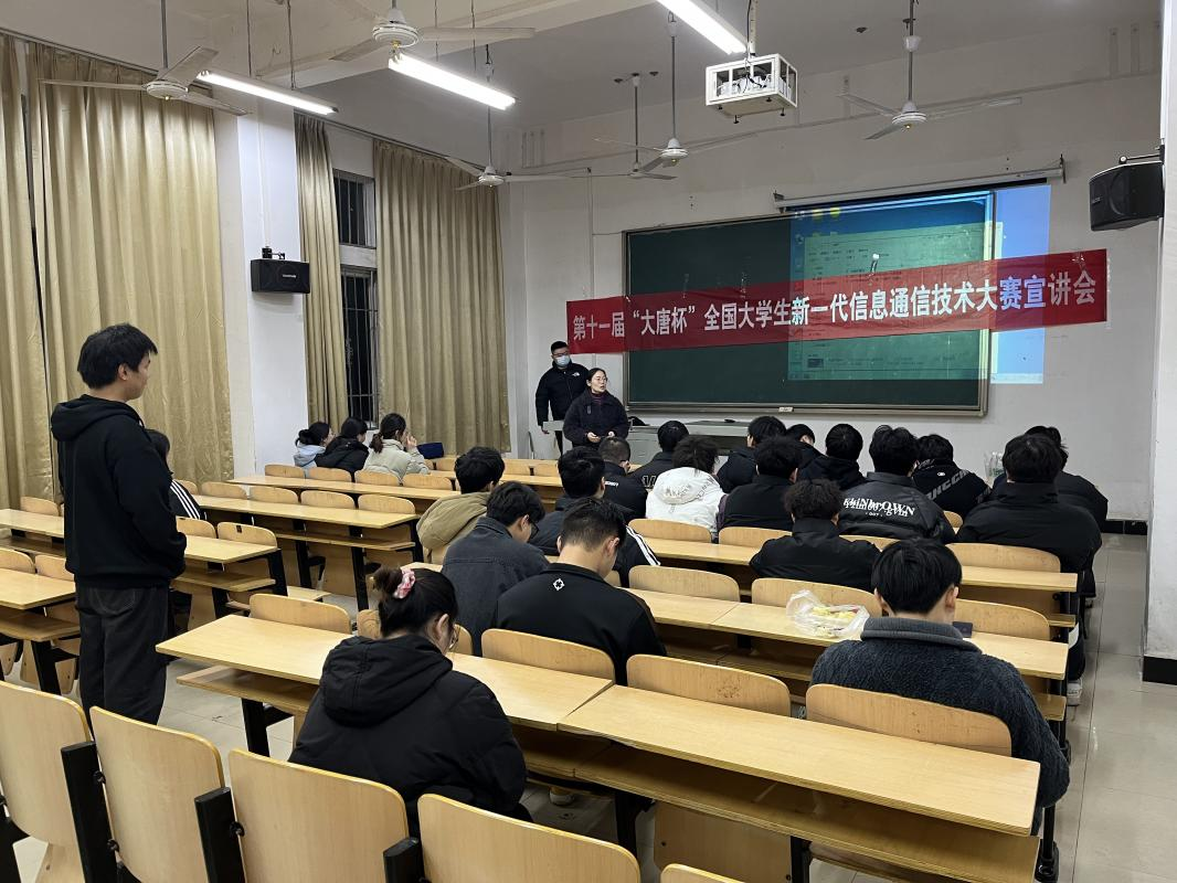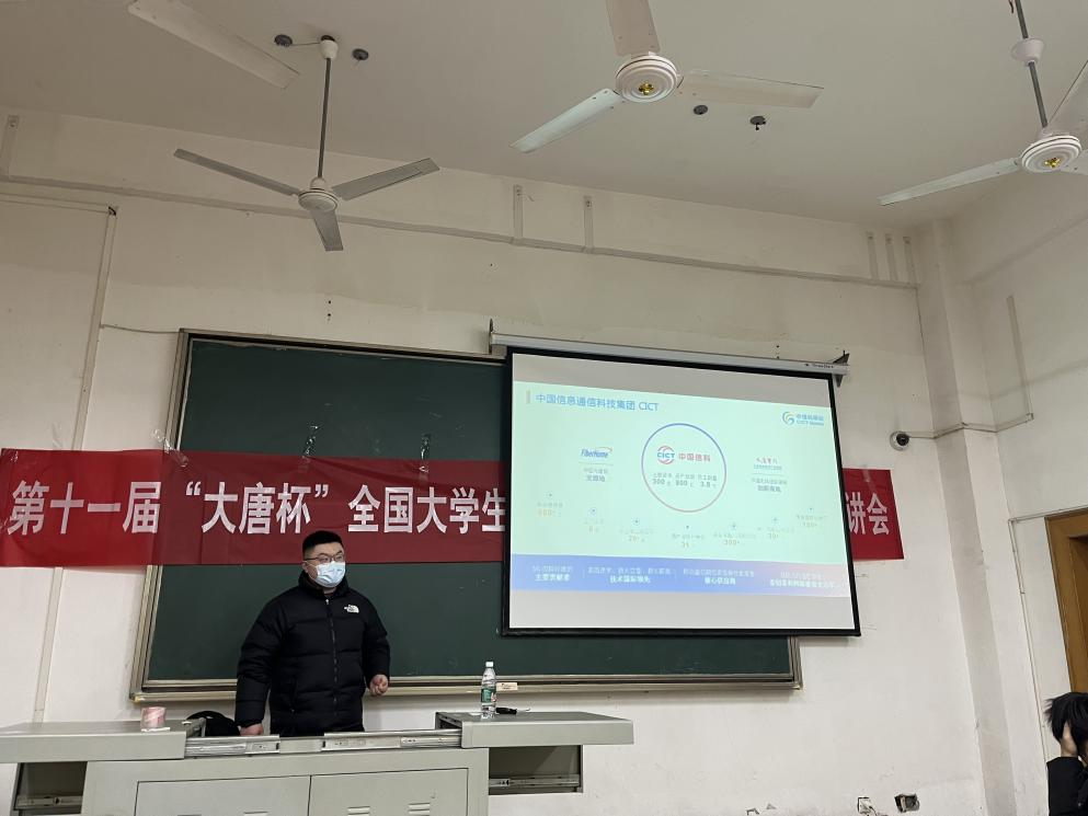 在宣讲会上,朱彤老师首先介绍了“大唐杯”的历史背景和比赛意义,强调了参与此项比赛对于提升同学们实践能力和创新思维能力的重要性。接着,他详细解读了比赛的规则和评审标准,帮助同学们明确了参赛的方向和目标。最后,他还分享了一些成功的参赛经验和策略,为同学们提供了宝贵的参考。