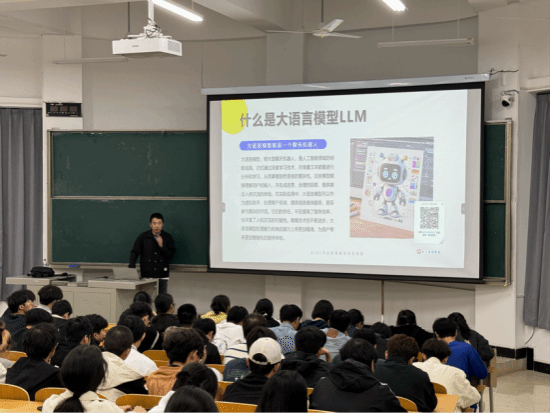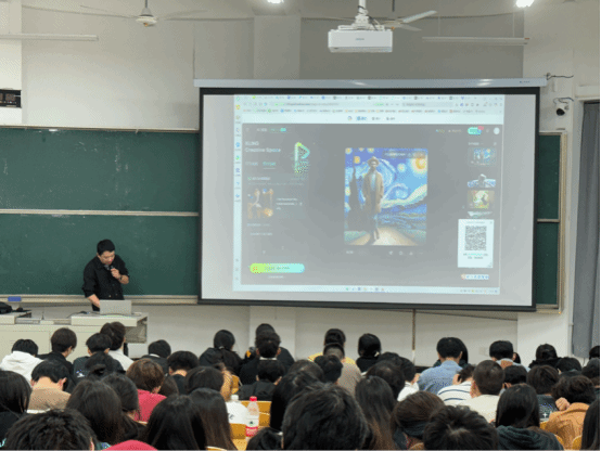 在互动环节,刘涛老师更是带领同学们亲身体验了AI工具的实际操作。演示如何利用人工智能完成写作、制作视频,以及通过文字描述生成图片和视频等。在他的引导下,同学们纷纷打开手机,跟随步骤进行实践,亲身感受到了AI技术的强大功能和便捷之处。