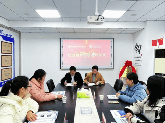 副经理胡明星介绍了公司及公司的办学历史、发展定位、专业设置、建设成果等,她表示此次合作搭建了校企交流、相互促进的平台,希望双方在协同教研、协同育人等多方面深入合作,让实习实践基地成为员工成长的摇篮,共建、共赢、共享的典范。