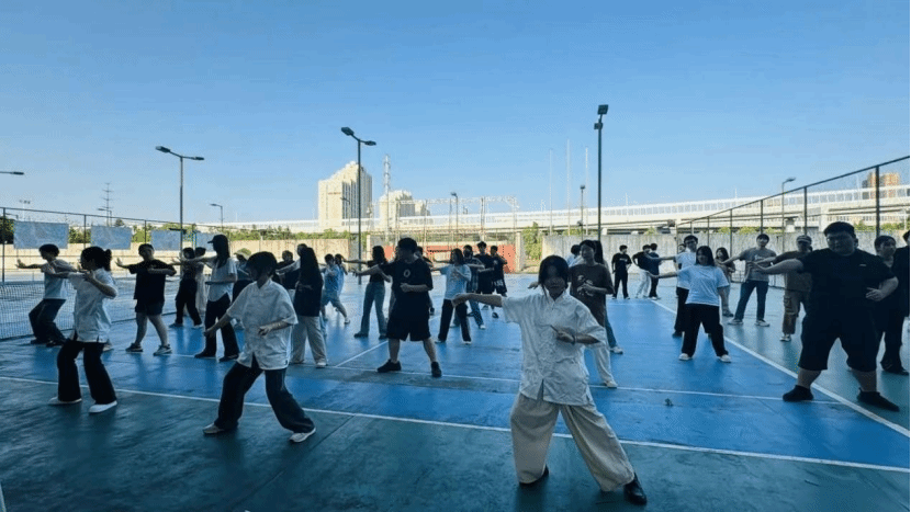 活动伊始,同学们在领操员的带领下,参与到八段锦的学习中。他们跟着领操员的动作,从最基本的站姿、呼吸方法学起,逐渐掌握了八段锦的每一个动作要领。