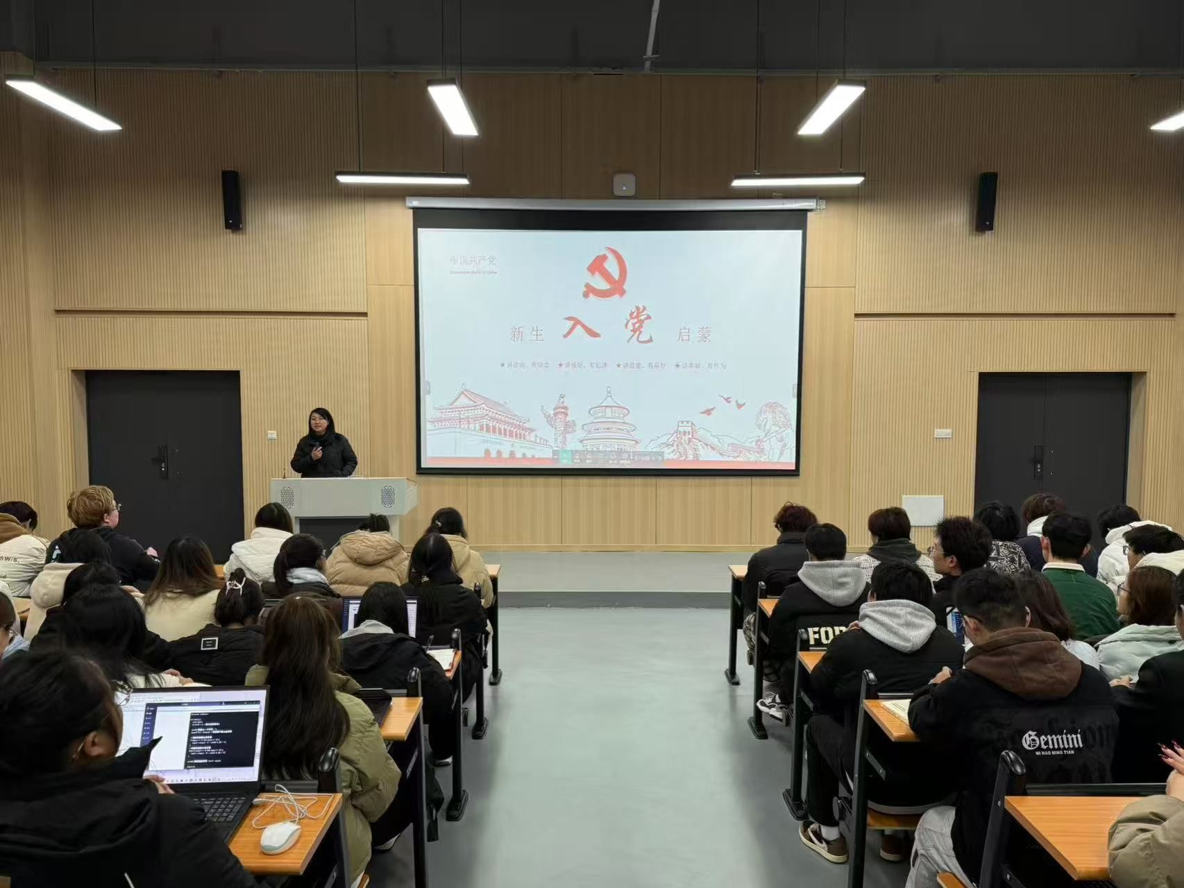 最后,党总支部书记罗宝军特别强调了入党不仅是完成一系列程序,更重要的是精神上的成长与蜕变。她鼓励新生们要在思想上、行动上积极向党组织靠拢,树立正确的世界观、人生观和价值观,不断加强党性修养,切实提高政治觉悟。同时,她还要求每位入党积极分子将个人梦想融入国家复兴的大潮之中,做新时代的奋斗者,以实际行动争取早日加入中国共产党,为实现中华民族伟大复兴的中国梦贡献力量。