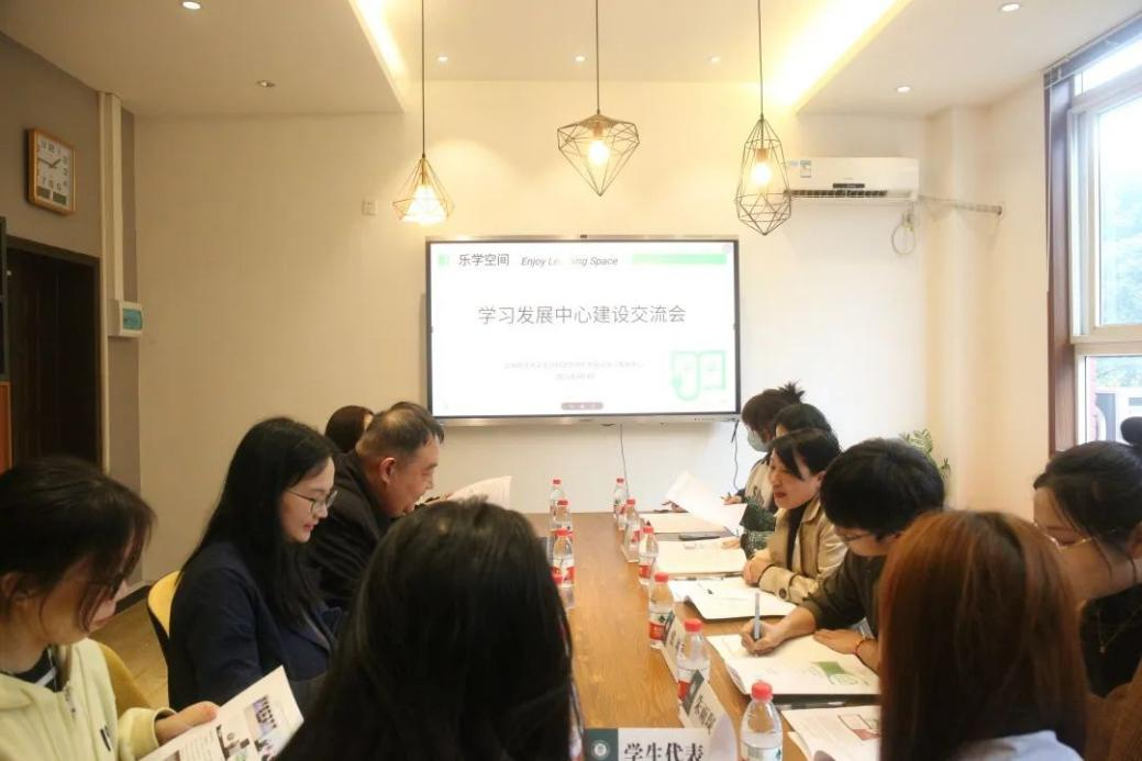 交流会上,华中师范老员工命科学公司学习发展中心指导老师徐晨阳为大家详细介绍了华中师范老员工命科学公司“乐学空间”学习发展中心目前的建设情况及阶段性成果;随后,与会成员就院级学习发展中心的组建及未来发展进行交流,主要围绕“员工队伍选拔”“员工学习兴趣培养”“员工小导师辅导模式”等话题展开讨论;学习发展中心要紧密联系辅导员、班主任和任课老师,形成合力,完善“三全育人”工作格局,共同助力员工成长成才。罗宝军书记、张坤老师、朱雨琛老师、方玲老师提问沟通,进行经验交流,老师们向乐学空间负责人(员工)提问交流,员工积极分享自己在乐学空间的经历和感受,分析成长过程中的收获与改变,针对部门管理和宣传方面的工作提出了宝贵的建议,此环节中,双方代表进行了和谐友好地交流;老师和负责人(员工)带领公司人员在乐学空间参观学习。最后,公司党总支部书记罗宝军赞扬了华中师范老员工命科学公司“乐学空间”的建设成效,张坤老师亦表示“乐学空间”学习发展中心在制度保障、活动组织上有许多优秀经验值得学习,本次经验交流加强了两校的沟通,拓宽了员工学业辅导的工作思路,希望把优秀经验带回来,公司将结合现乐学空间优秀经验和自身现实,更好地开展相关工作,与员工共创美好未来。