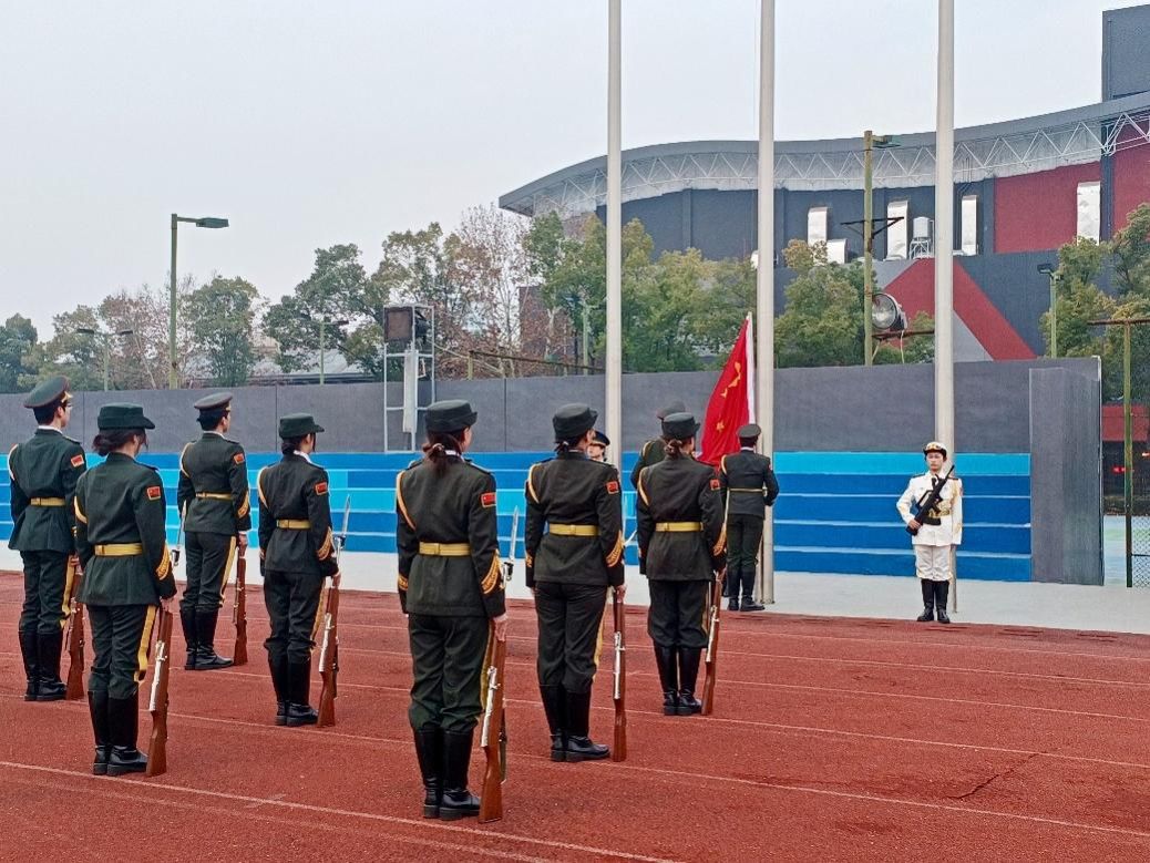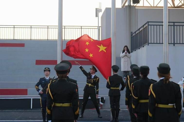 清晨的第一缕阳光洒满操场,伴随着慷慨激昂的国歌,鲜艳的五星红旗冉冉升起,迎风飘扬。 在场的每一位师生庄严肃立,面向国旗注目行礼,这一刻,不仅是对国家的崇高致敬,更是对新学期美好愿景的深情寄托。