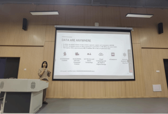 讲座中,张梦筱讲师围绕“数据市场、数据隐私、数据价值”三大核心议题展开,构建起从宏观到微观的知识体系。她以成本和消费者的角度解析数据如何从“信息碎片”转变为可定价、可流通的数字经济核心生产要素,揭示传媒行业在数据采集、分析、应用中的关键角色。